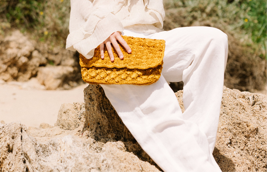 Hechos a mano en Colombia con fibras naturales, estos productos combinan tradición artesanal y diseño actual. Una pieza que habla de estilo consciente y elegancia natural.